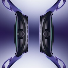 The watch is built in black DLC-coated Grade 2 titanium. Lightweight. Matte. Uncompromising. Its strap draws from New Balance’s Energy Arc technology — engineered for motion, shaped for comfort. Violet, midnight blue, neon green. The palette is precise. No guesswork. Just alignment.